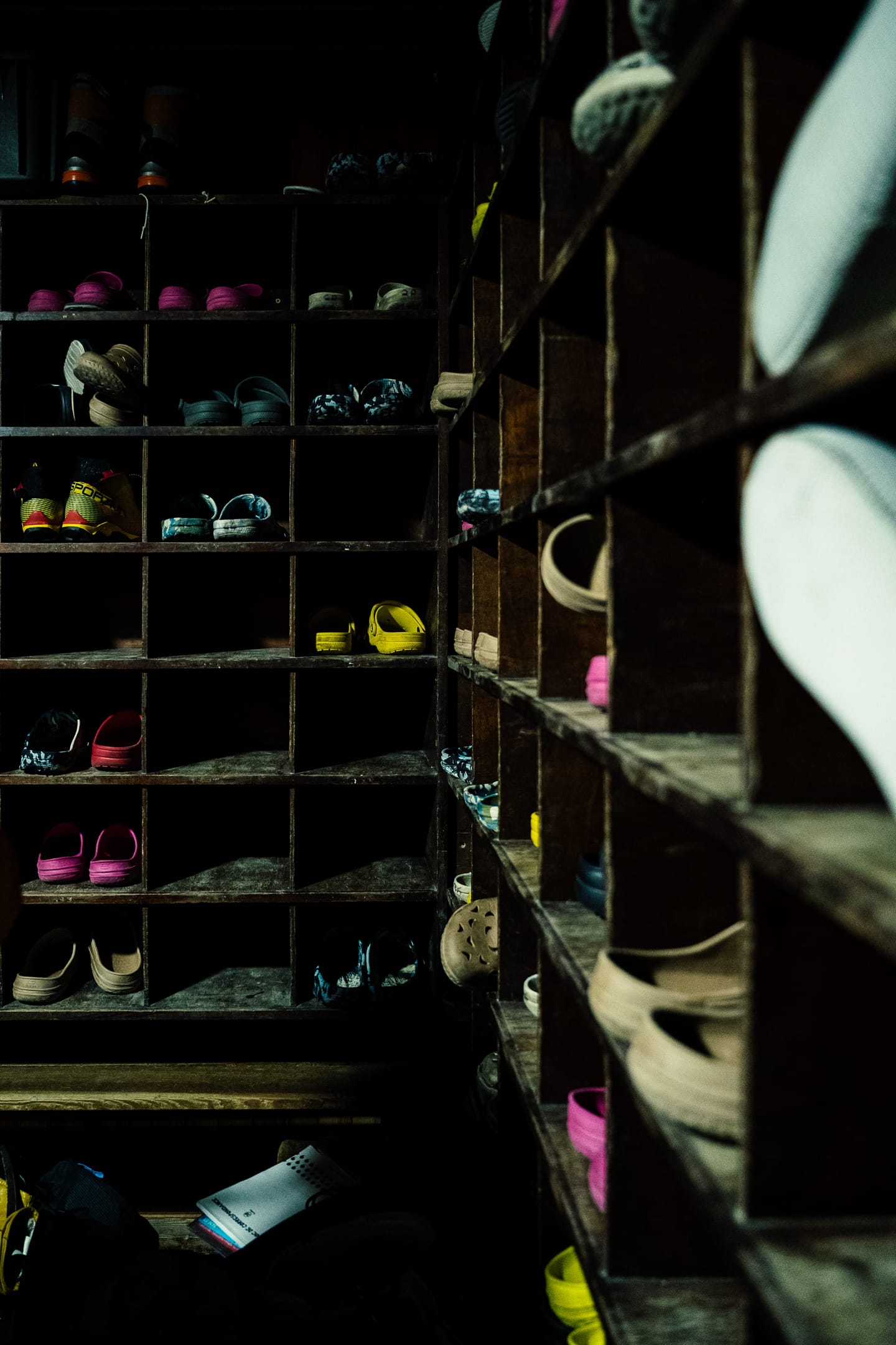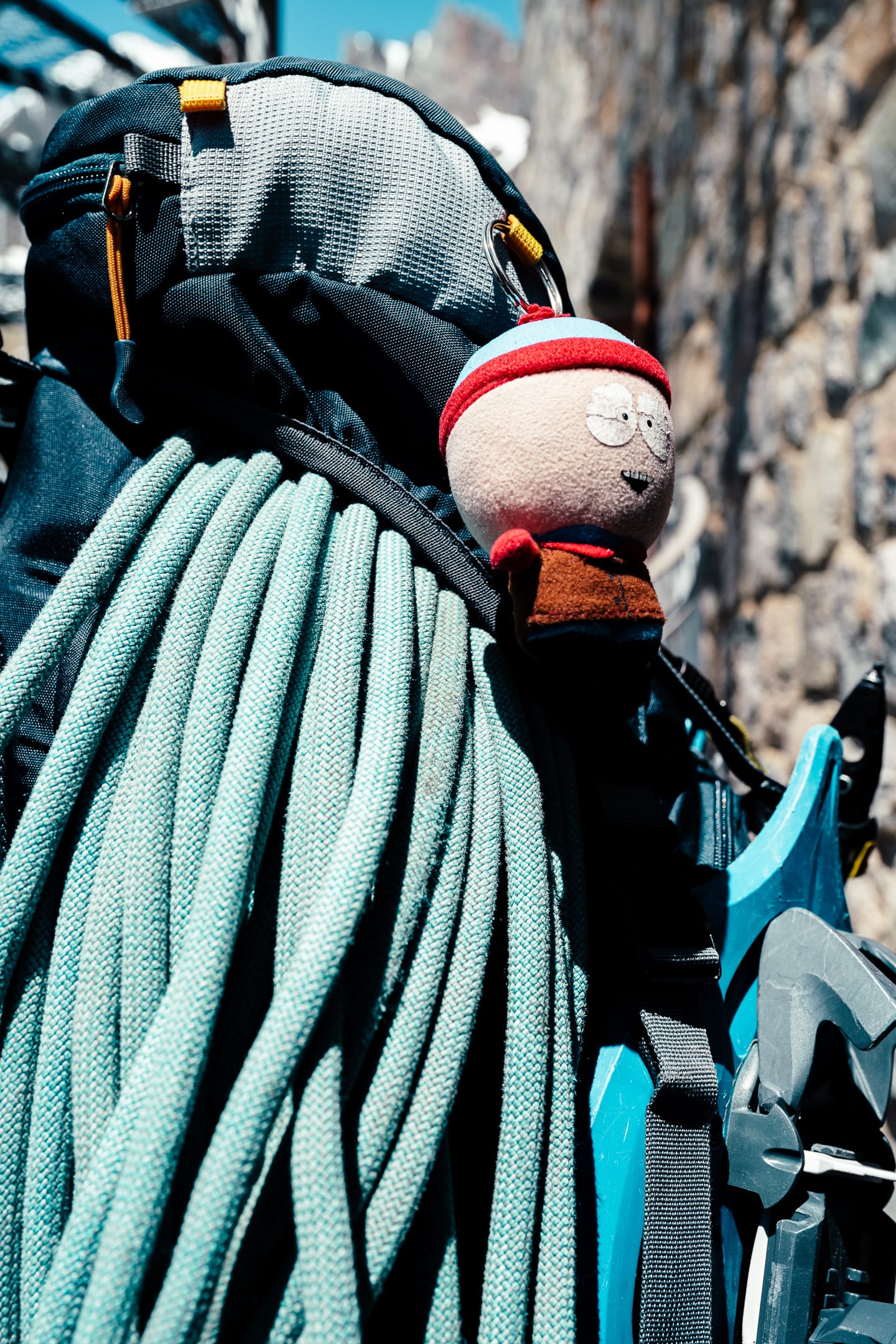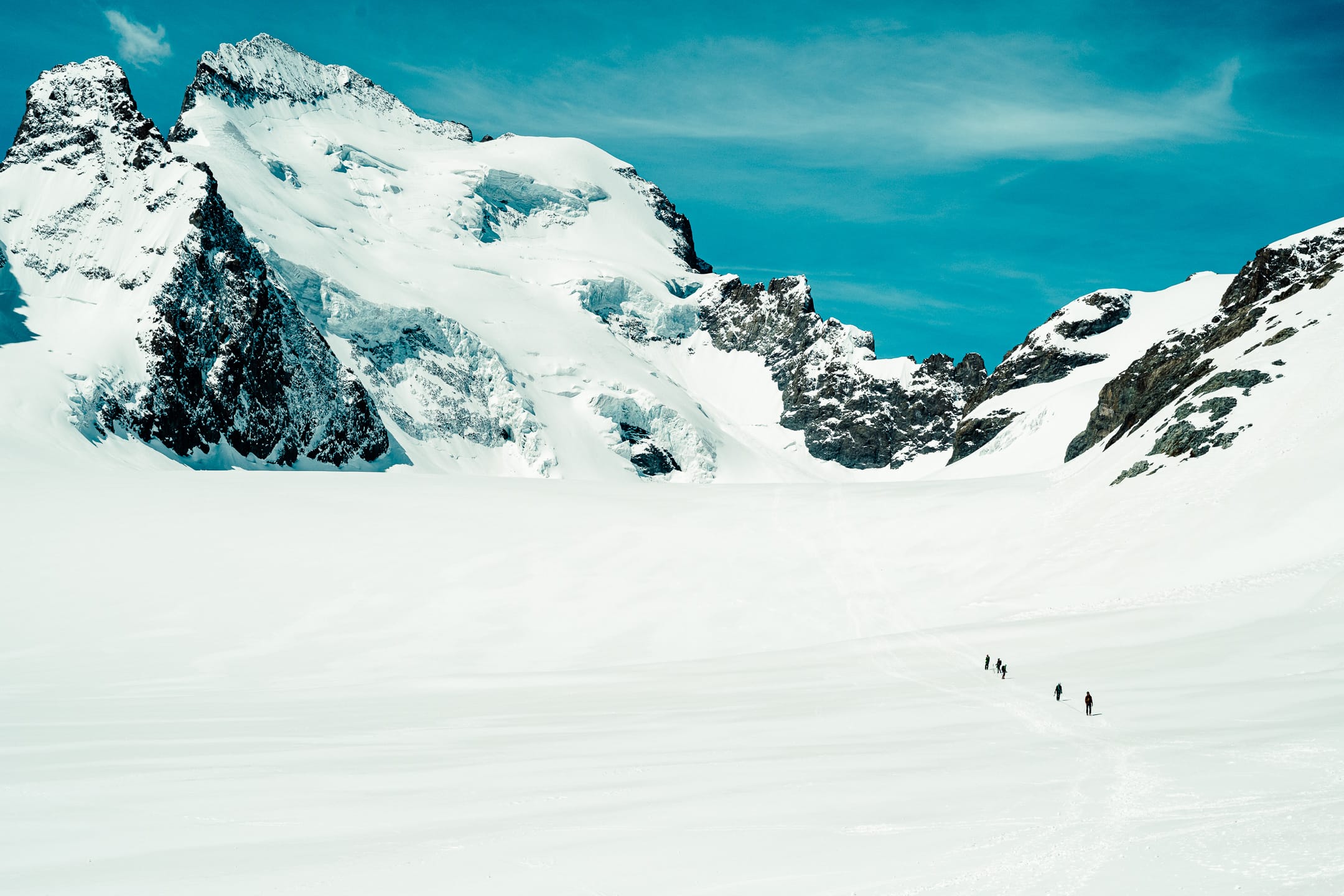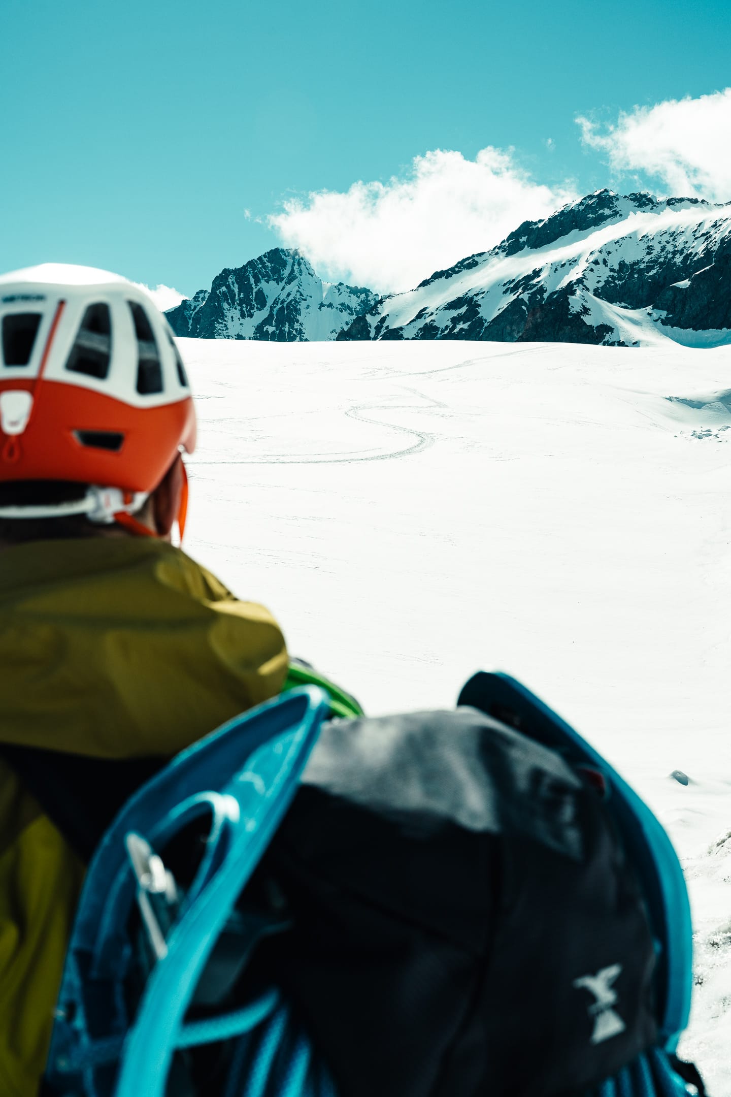 Réaliser des photos ici est un certain défi sur différents points. Niveau matériel, il faut quelque chose de léger et de réactif. J’ai mon boîtier Nikon Z7II avec un 24-70 mm f/2.8 ; trois batteries : c’est déjà lourd. Pour le ranger dans le sac d’alpinisme, j’utilise une housse. Je le laisse toutefois accroché à la bretelle du sac à dos, avec une attache rapide, afin de pouvoir faire mes prises de vue au plus vite. Malgré le peu de matériel, le dénivelé m’a rappelé l’expression de « caillou » pour discuter équipement photo. Oui, j’ai l’impression d’avoir lesté le sac. Je suis le seul avec du matériel photographique conséquent, en plus des essentiels d’alpinisme que nous avons chacun·e : je ne regrette pas de travailler le cardio pour ne pas être à la traîne.