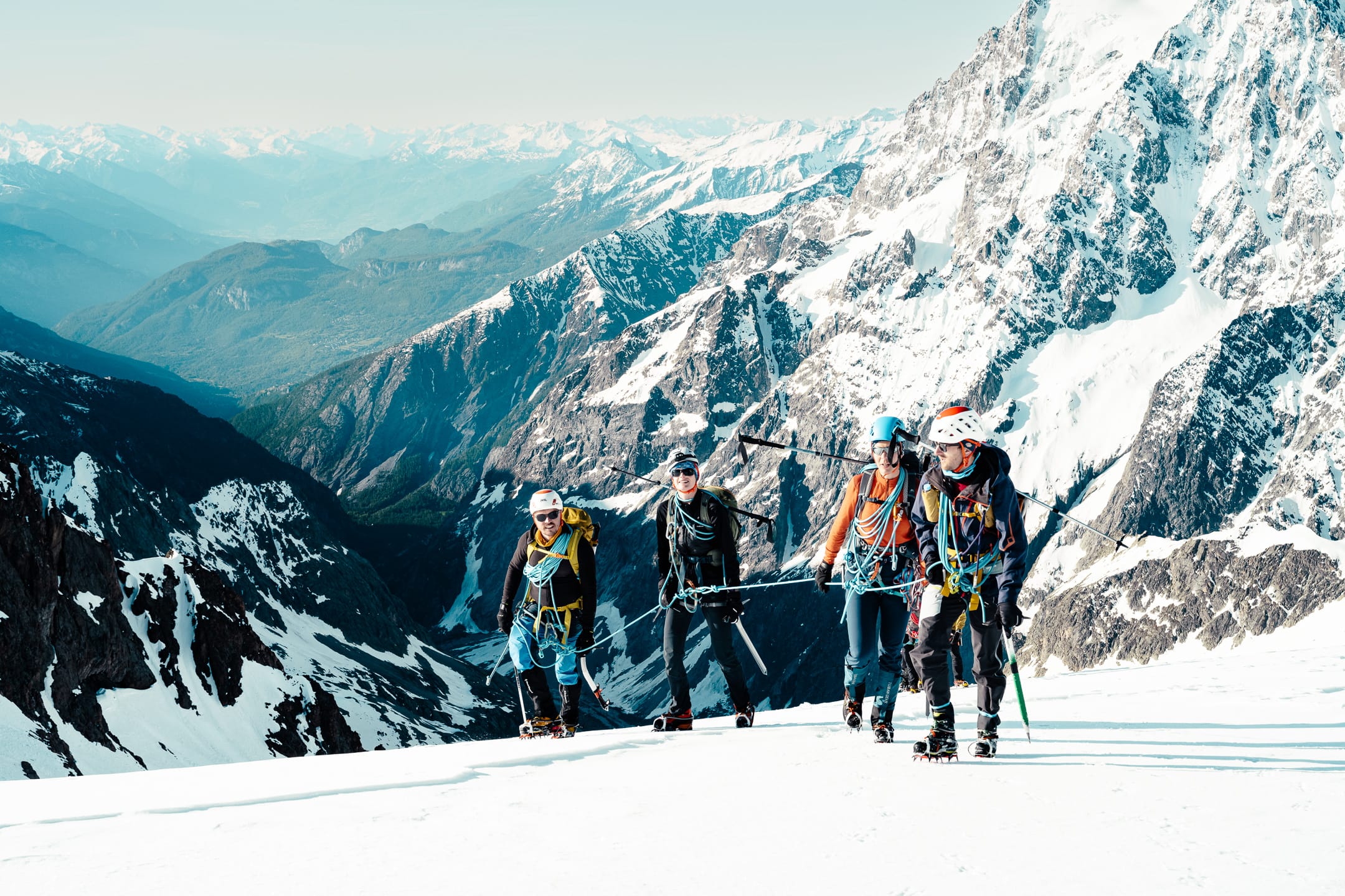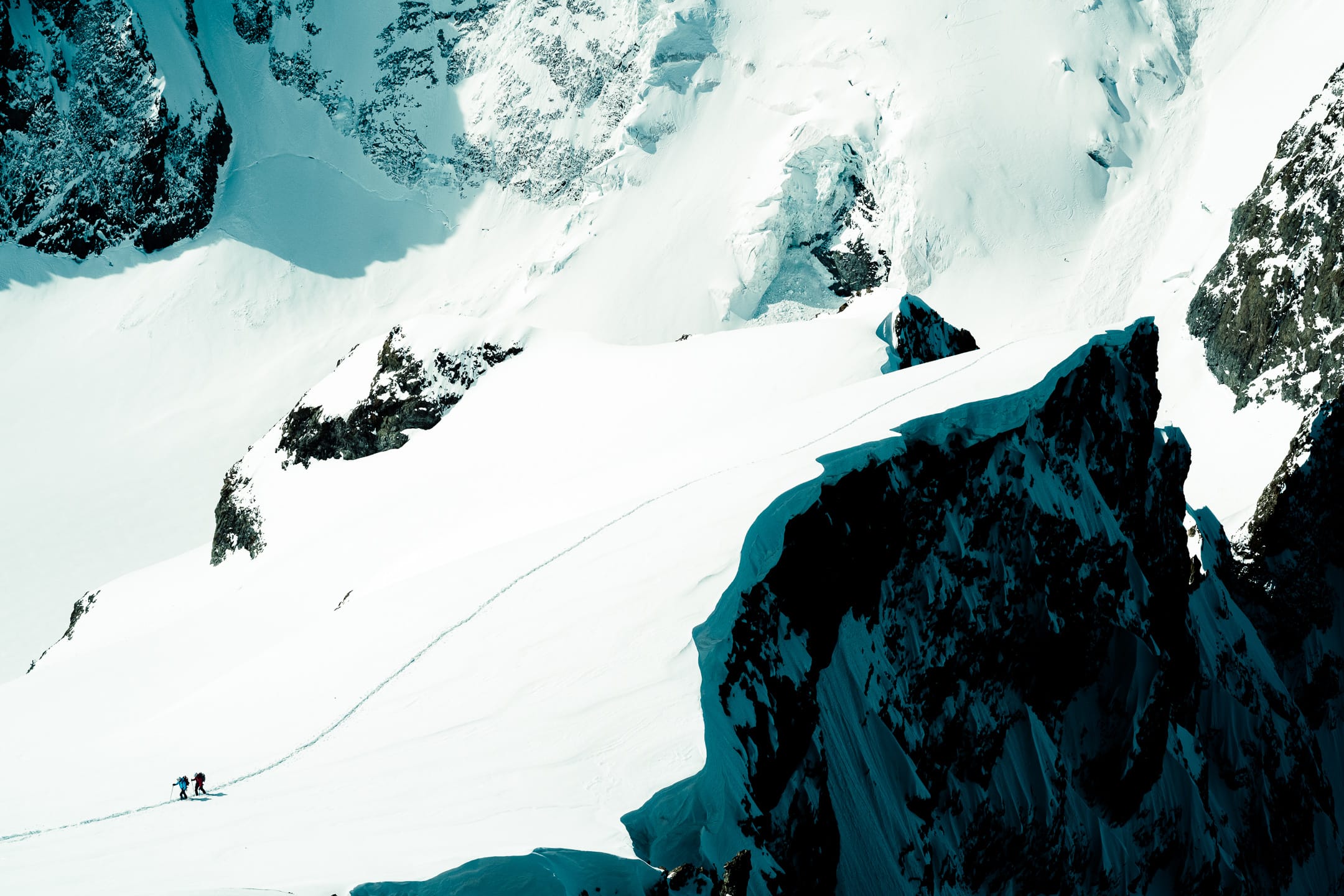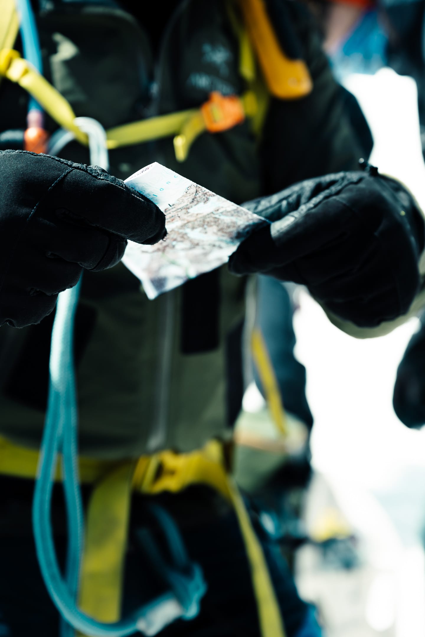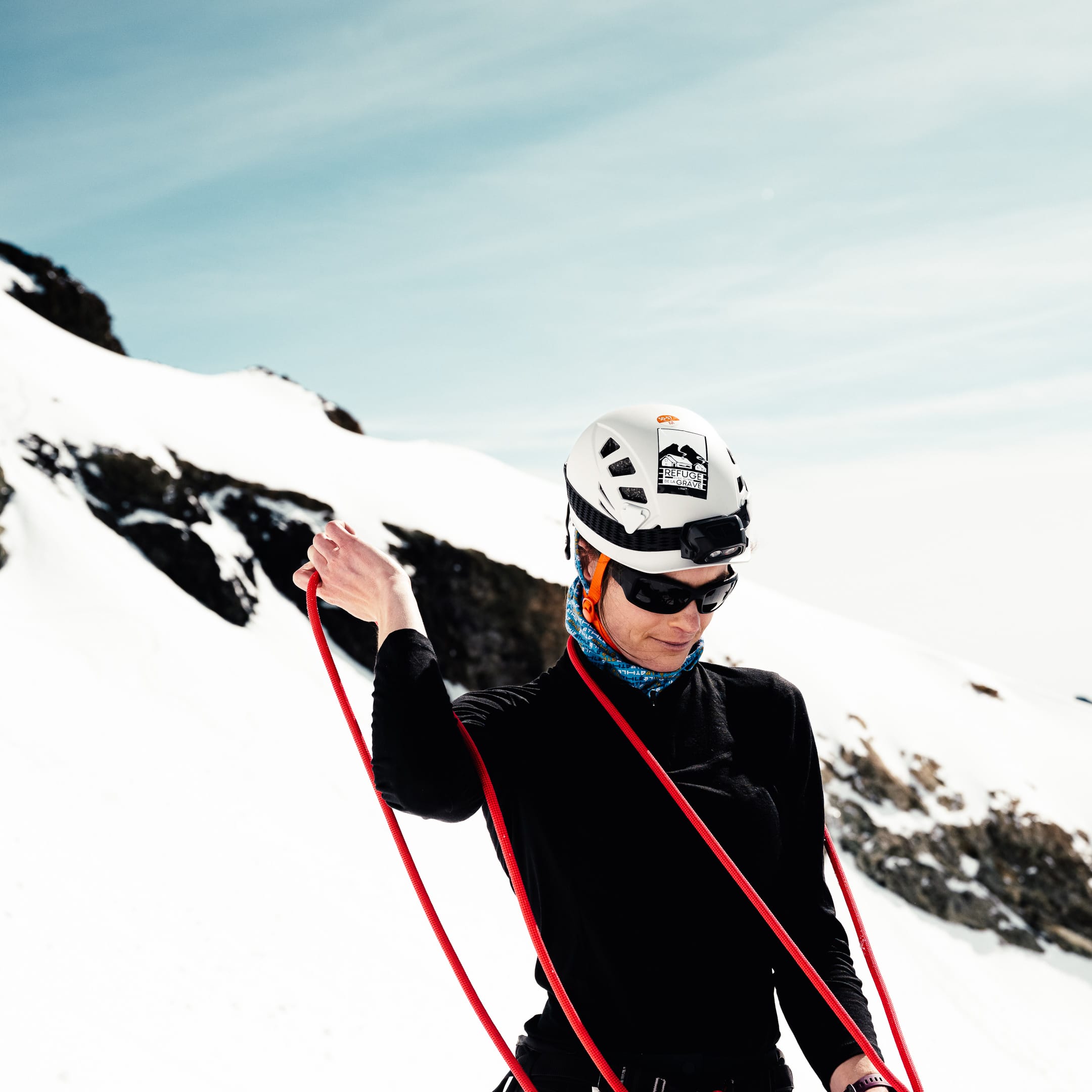 Outre le matériel photo, il faut aussi gérer le temps en permanence. D’un côté, celui nécessaire à la réalisation des clichés et à la gestion du matériel. De l’autre, celui du groupe et de la cordée, qu’il ne faut pas mettre en retard. La prise de vue demande toujours un arrêt du photographe, physique et/ou mental. C’est rapide, mais parfois peu compatible avec des activités qui exigent une concentration constante, ainsi qu’un déplacement continu dans un environnement non aseptisé et qui peut être dangereux si l’on y agit de manière inadéquate. Pour l’image, il faut parfois s’arrêter physiquement quelques secondes ou minutes : cela peut être désagréable, voire risqué, pour la cordée. Il faut aussi s’arrêter mentalement pour se concentrer, ce qui peut créer des problèmes si c’est mal géré. Ce temps de la photo peut entrer en contradiction avec celui du groupe. Pour moi, en montagne, c’est un aspect difficile à équilibrer. Ne serait-ce que le matin : lorsque tout le monde boucle son sac, j’ai besoin d’une dizaine de minutes de rab pour vérifier la carte mémoire, la batterie (vis-à-vis du froid) et la lentille frontale, souvent entachée par la neige en suspension.