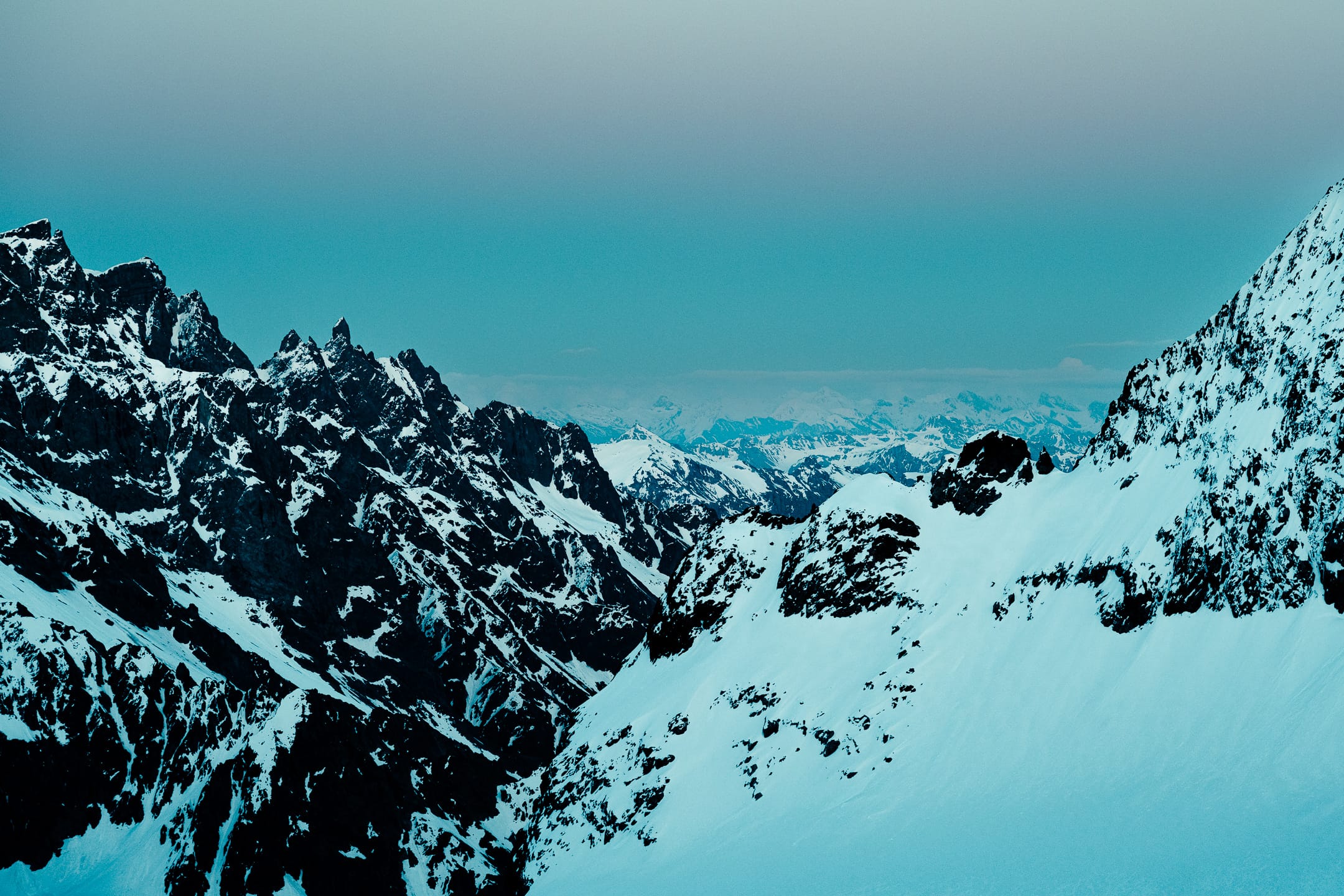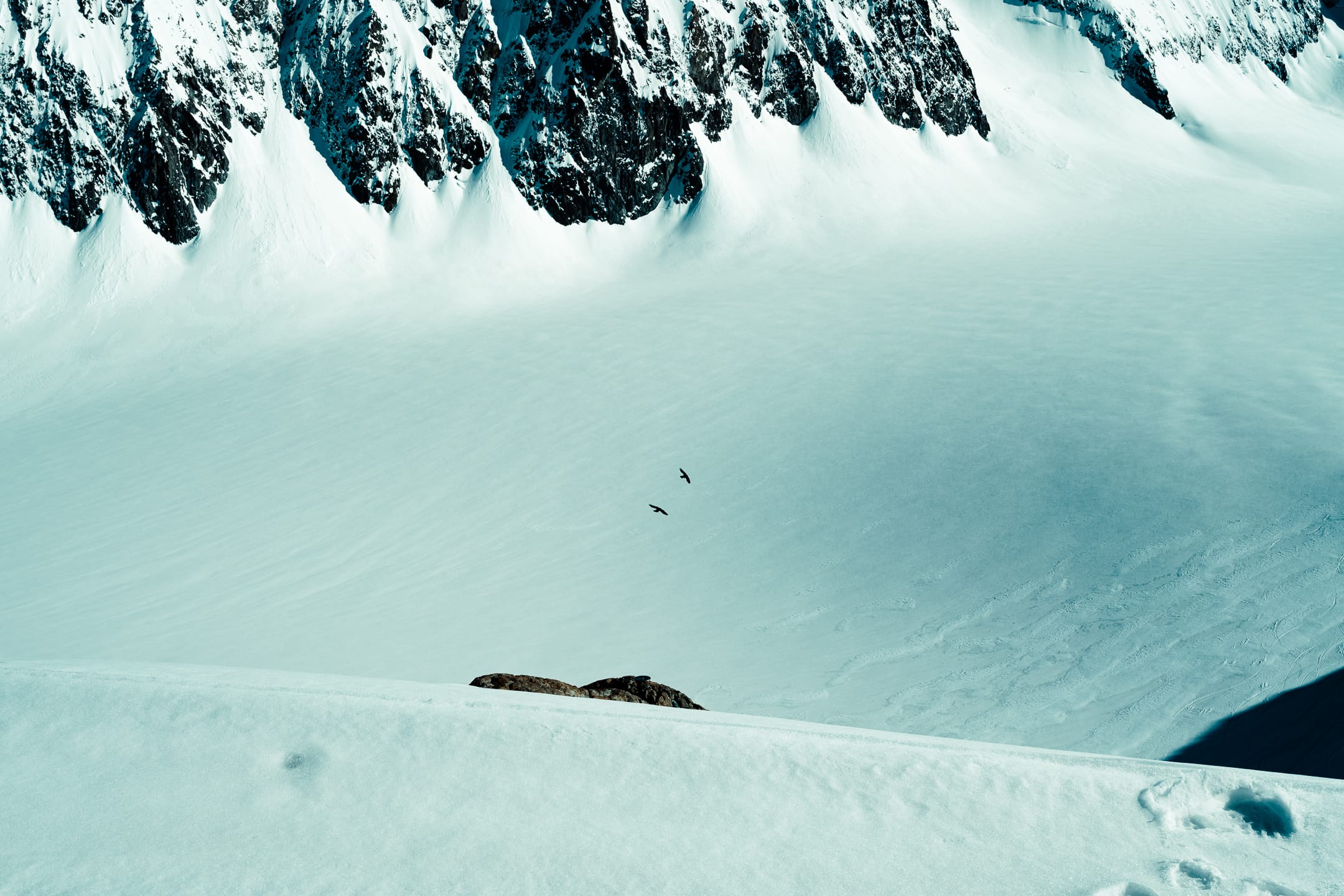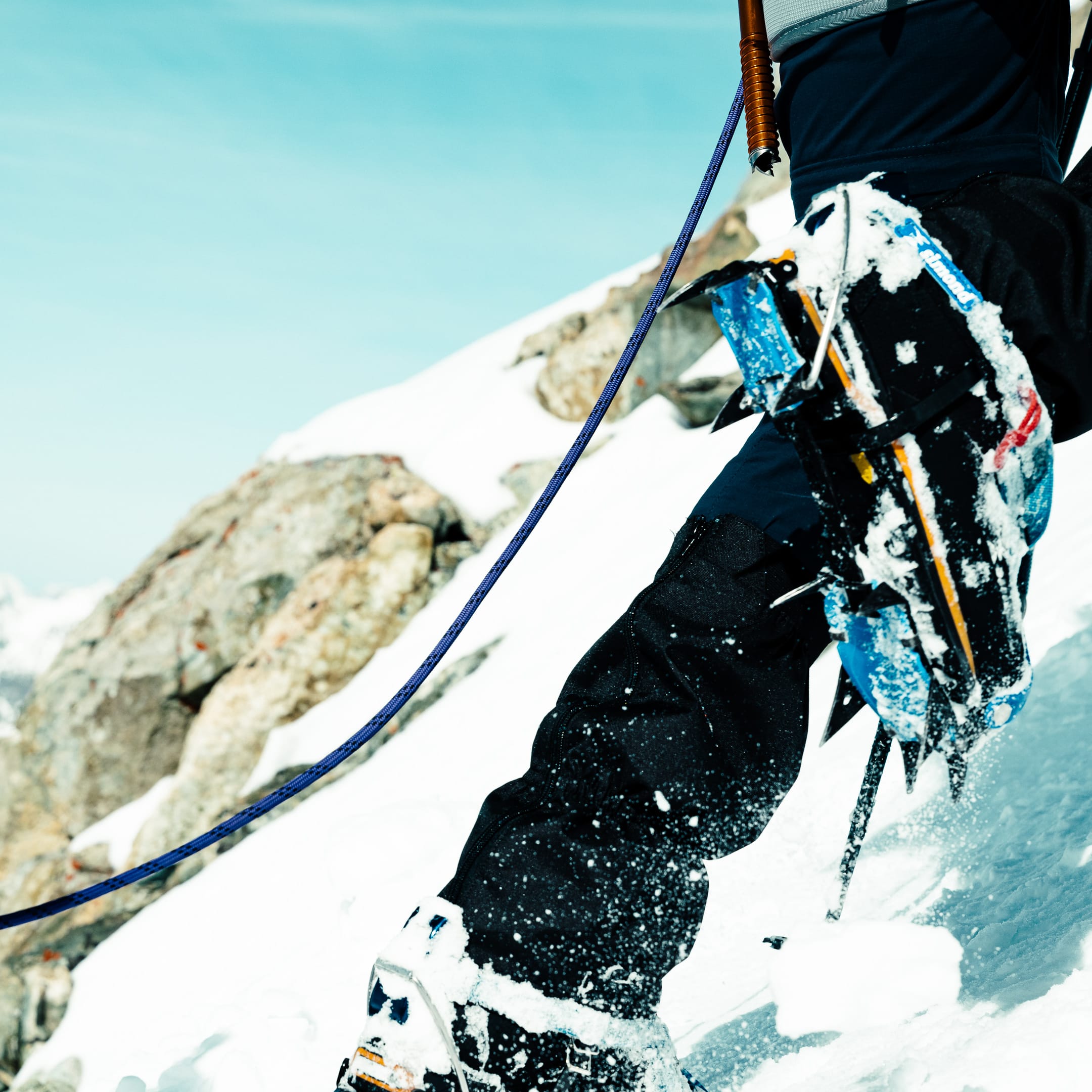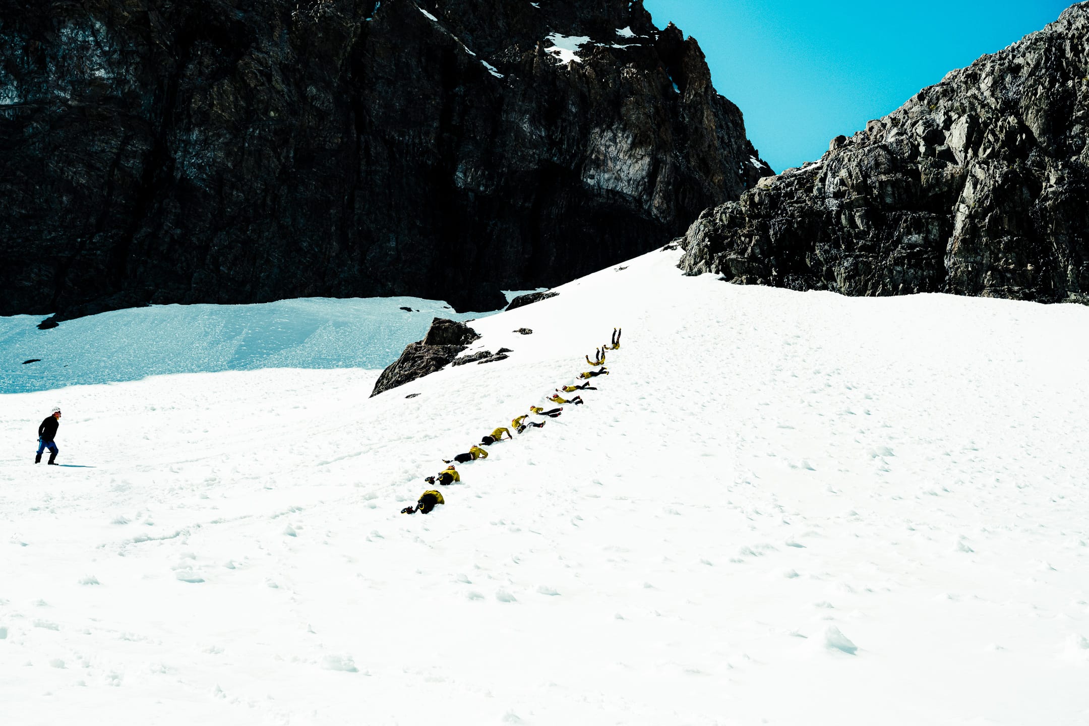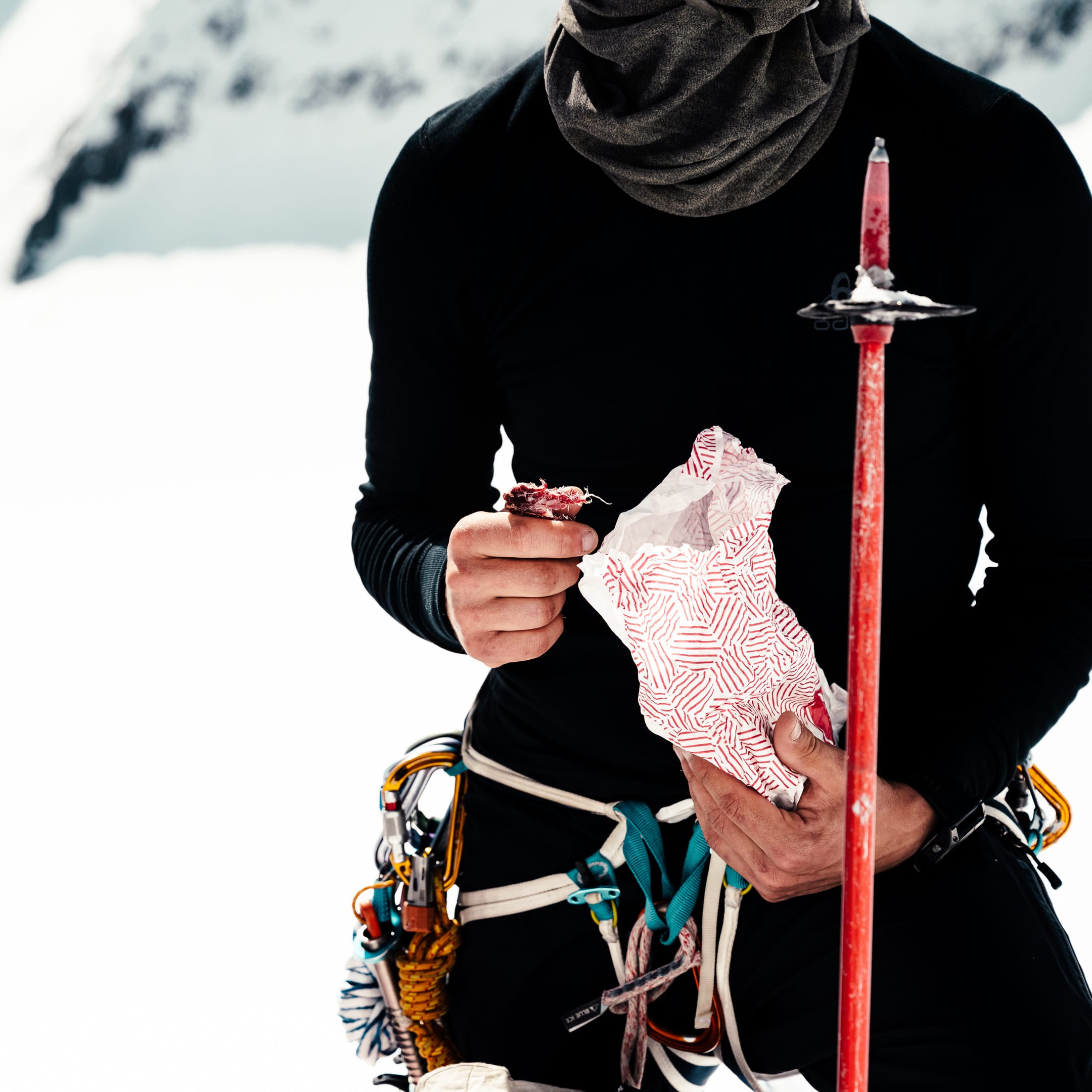 Outre le matériel photo, il faut aussi gérer le temps en permanence. D’un côté, celui nécessaire à la réalisation des clichés et à la gestion du matériel. De l’autre, celui du groupe et de la cordée, qu’il ne faut pas mettre en retard. La prise de vue demande toujours un arrêt du photographe, physique et/ou mental. C’est rapide, mais parfois peu compatible avec des activités qui exigent une concentration constante, ainsi qu’un déplacement continu dans un environnement non aseptisé et qui peut être dangereux si l’on y agit de manière inadéquate. Pour l’image, il faut parfois s’arrêter physiquement quelques secondes ou minutes : cela peut être désagréable, voire risqué, pour la cordée. Il faut aussi s’arrêter mentalement pour se concentrer, ce qui peut créer des problèmes si c’est mal géré. Ce temps de la photo peut entrer en contradiction avec celui du groupe. Pour moi, en montagne, c’est un aspect difficile à équilibrer. Ne serait-ce que le matin : lorsque tout le monde boucle son sac, j’ai besoin d’une dizaine de minutes de rab pour vérifier la carte mémoire, la batterie (vis-à-vis du froid) et la lentille frontale, souvent entachée par la neige en suspension.