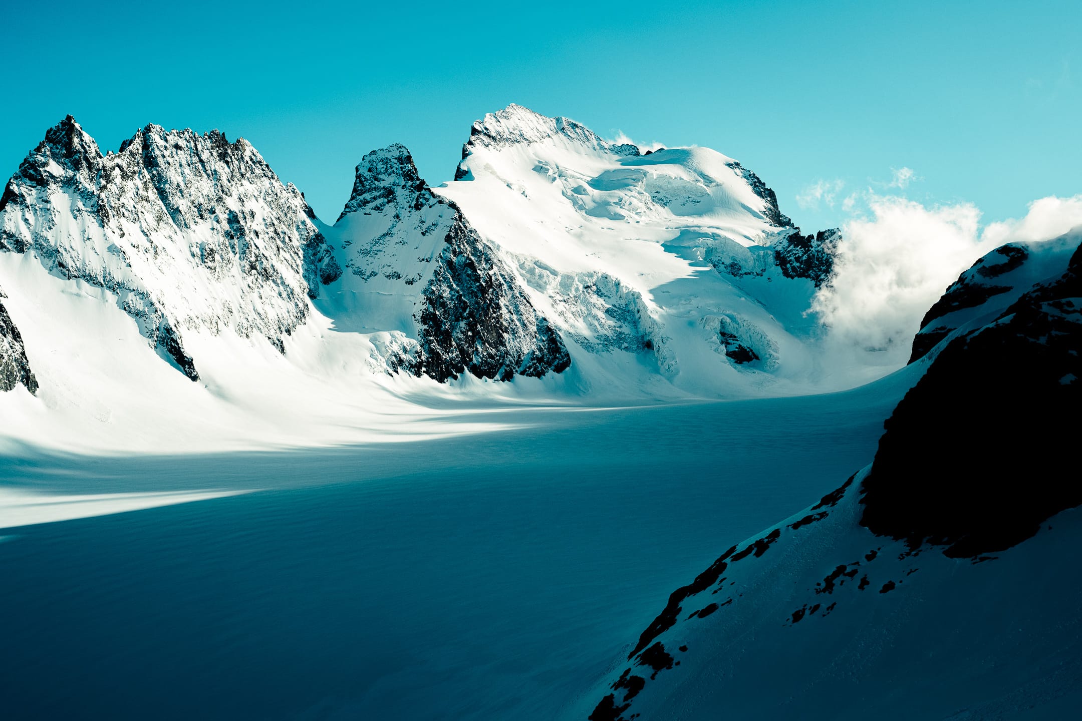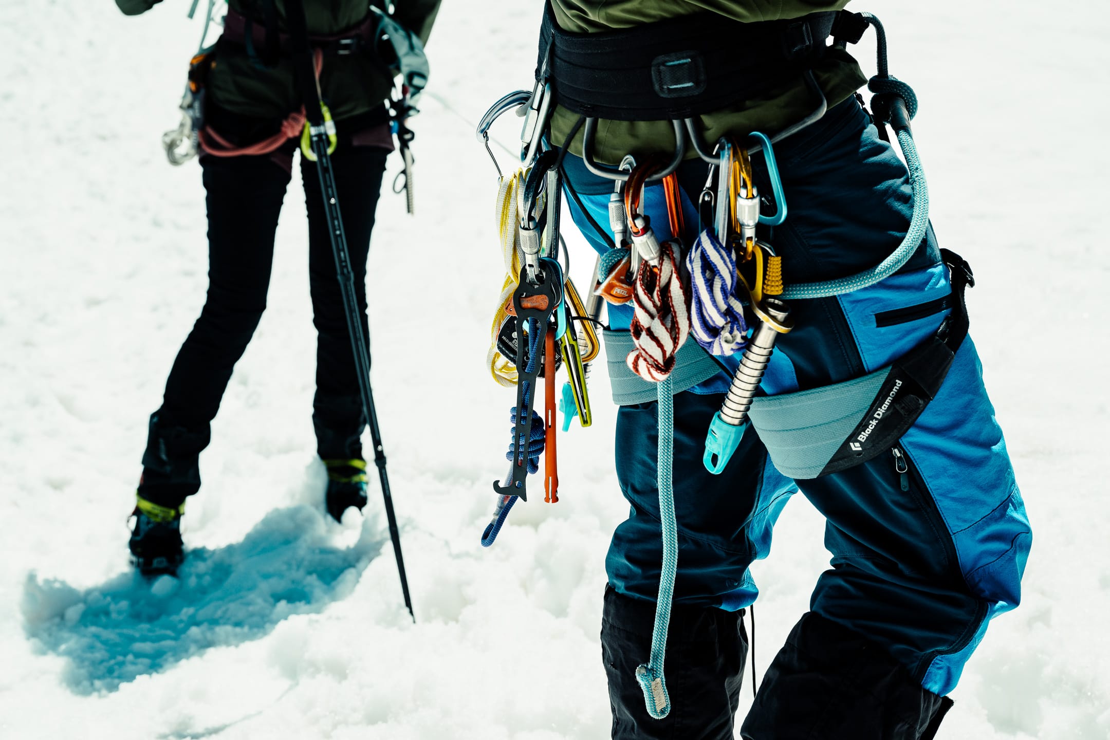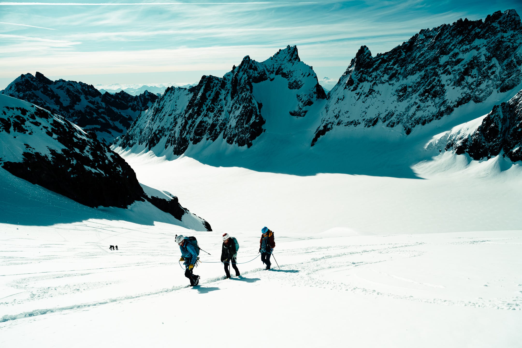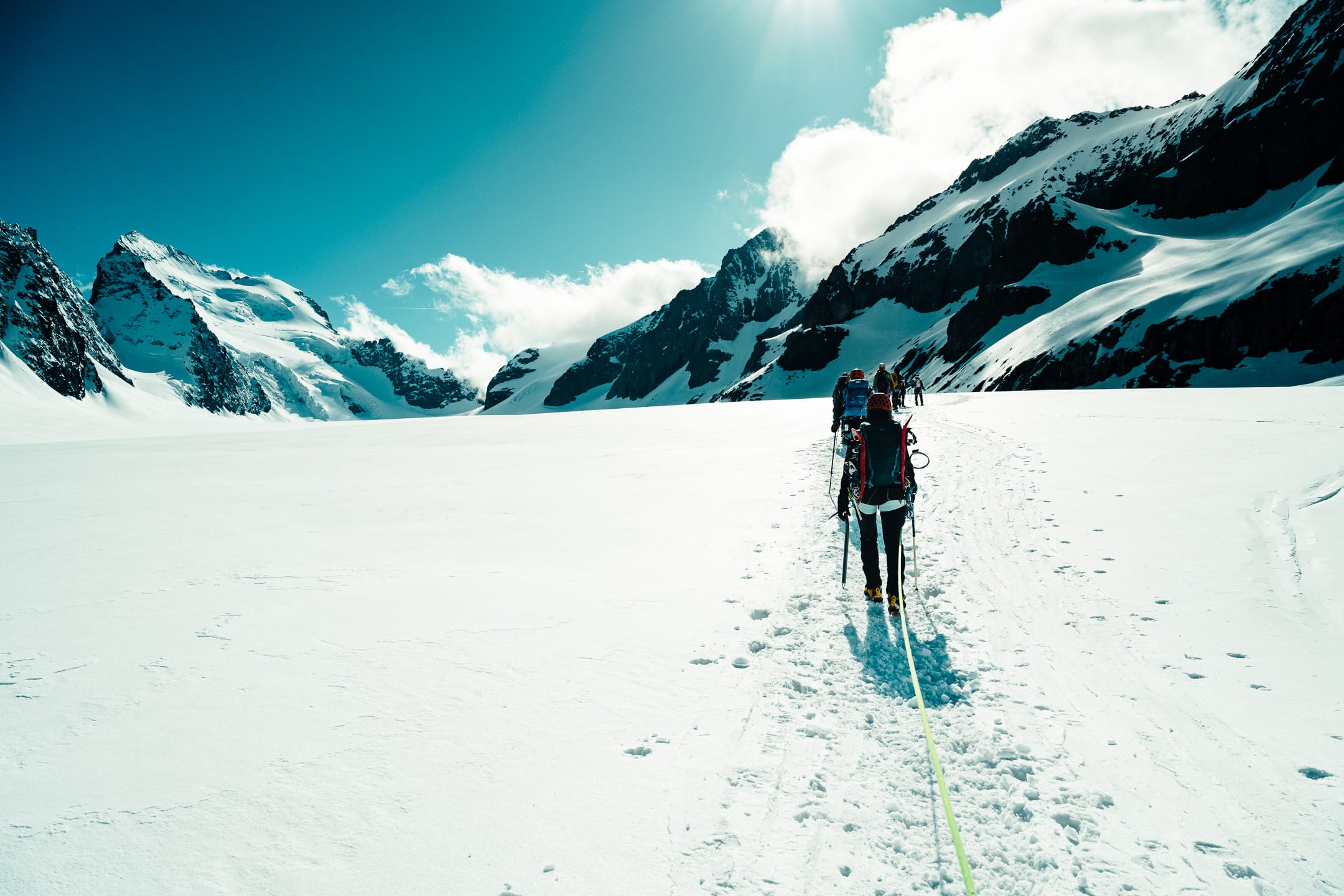 Outre le matériel photo, il faut aussi gérer le temps en permanence. D’un côté, celui nécessaire à la réalisation des clichés et à la gestion du matériel. De l’autre, celui du groupe et de la cordée, qu’il ne faut pas mettre en retard. La prise de vue demande toujours un arrêt du photographe, physique et/ou mental. C’est rapide, mais parfois peu compatible avec des activités qui exigent une concentration constante, ainsi qu’un déplacement continu dans un environnement non aseptisé et qui peut être dangereux si l’on y agit de manière inadéquate. Pour l’image, il faut parfois s’arrêter physiquement quelques secondes ou minutes : cela peut être désagréable, voire risqué, pour la cordée. Il faut aussi s’arrêter mentalement pour se concentrer, ce qui peut créer des problèmes si c’est mal géré. Ce temps de la photo peut entrer en contradiction avec celui du groupe. Pour moi, en montagne, c’est un aspect difficile à équilibrer. Ne serait-ce que le matin : lorsque tout le monde boucle son sac, j’ai besoin d’une dizaine de minutes de rab pour vérifier la carte mémoire, la batterie (vis-à-vis du froid) et la lentille frontale, souvent entachée par la neige en suspension.