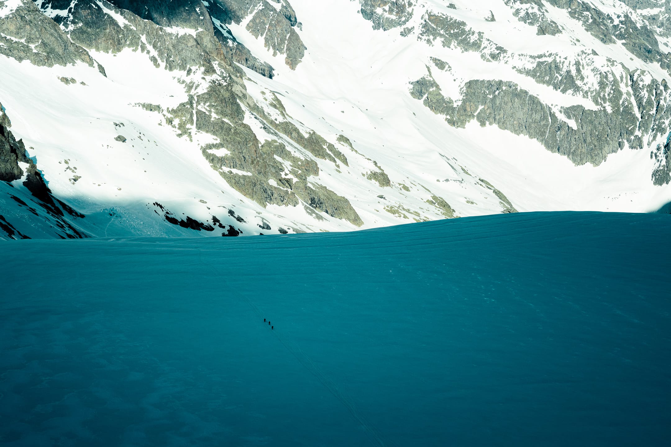 Lors de la redescente, une question me taraude dans ces espaces : leur accessibilité et les groupes qui les fréquentent. La montagne ne divise pas, au contraire, elle est le trait d’union qui rassemble. Elle peut tisser des liens entre les personnes, faire émerger des relations, gommer les aspérités. Elle doit être un lieu d’inclusion pour ce faire. Ce qui existe en bas comme absurdités de l’humanité y reste. Ici, notre groupe n’était pas des plus hétérogènes qui soient, j’en suis conscient. Mais on peut noter une mixité de genre croissante dans les massifs ; il faut continuer en ce sens à participer à permettre à une diversité d’individus de fouler ces lieux. Bien sûr, ce sont des espaces fragiles, cependant ils sont d’ores et déjà menacés au sein de l’anthropocène. Pour faire face aux défis à venir, il nous faut penser global et agir local : partager ces lieux, apprendre aux autres à en prendre soin et à les aimer, amène de fait à vouloir les protéger. Comment demander aux autres de défendre quelque chose qu’ils ne connaissent point ?