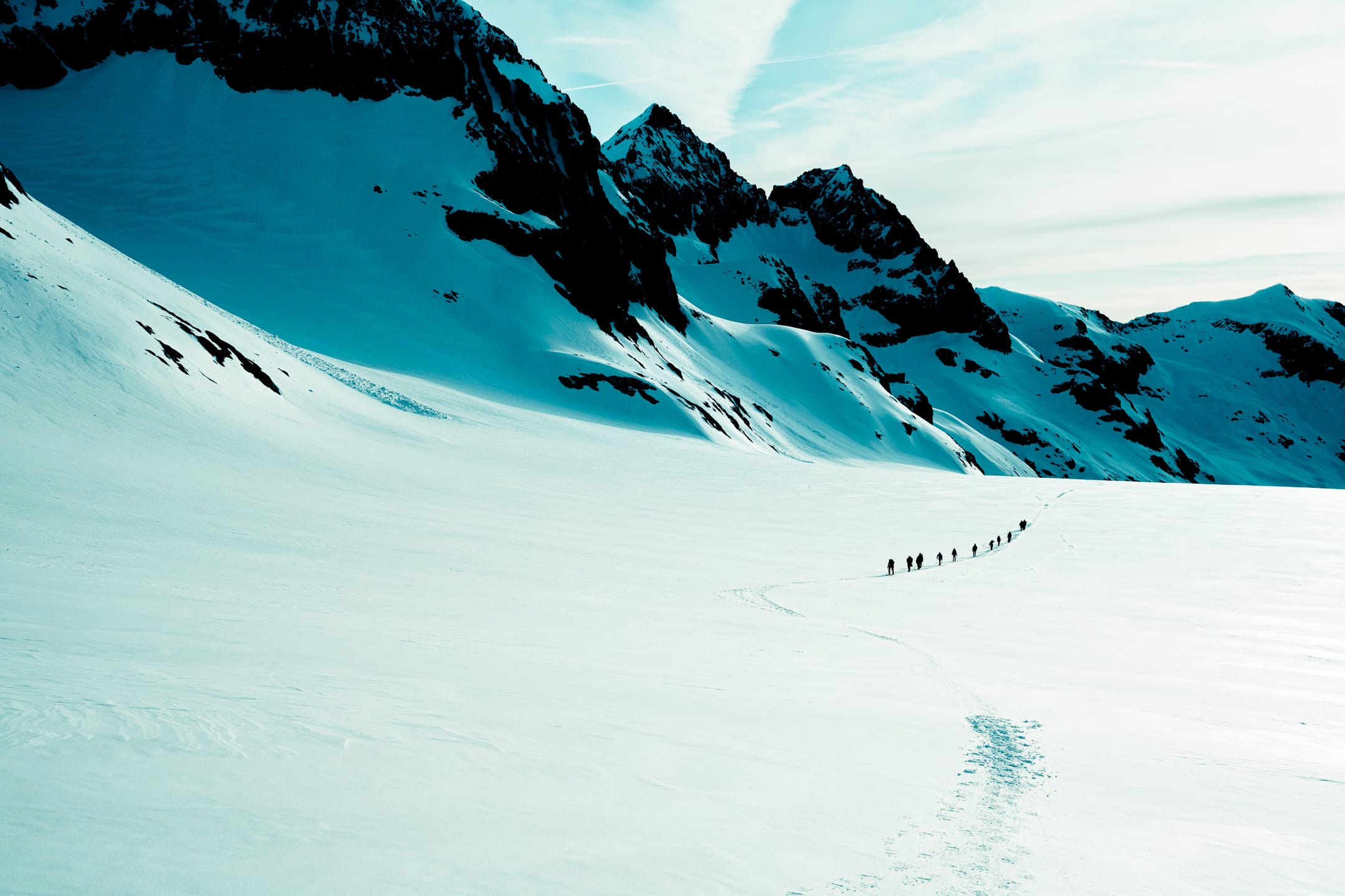 J’ai essayé de constituer une série photographique non pas sur la montagne mais sur nous et la montagne. Cette dernière a le rôle principal de la série. Ce que j’essaie de mettre en avant, c’est le moment vécu, autrement dit ces paysages qui n’existent que par notre présence. Bien entendu, la beauté des hauteurs se suffit à elle-même. Toutefois, ce qui m’intéresse, c’est notre rapport à cette beauté, c’est-à-dire comment nous la percevons. Ainsi, les expériences que l’on peut y vivre résultent de nos ressentis. Ces derniers sont influencés tant par les personnes qui nous accompagnent que par nos imaginaires. Arriver au sommet n’a pas d’importance pour moi, ce qui compte est l’aventure. Mes photos cherchent à vous emmener avec moi dans cette expérience de groupe, de vie, là-haut.